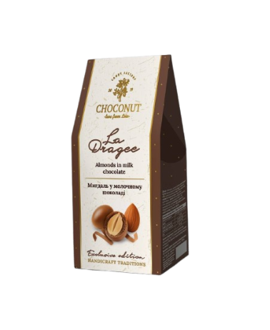 Склад: шоколад чорний [цукор, какао терте, еквівалент какао-масла (негідрогенізована пальмова олія), какао-масло, емульгатори: лецитин (з сої), Е 476; ароматизатор ванільний)], ядра мигдалю смаженого, глазуруючі агенти: E 414, E 904. Може містити сліди глютену та інших горіхів.