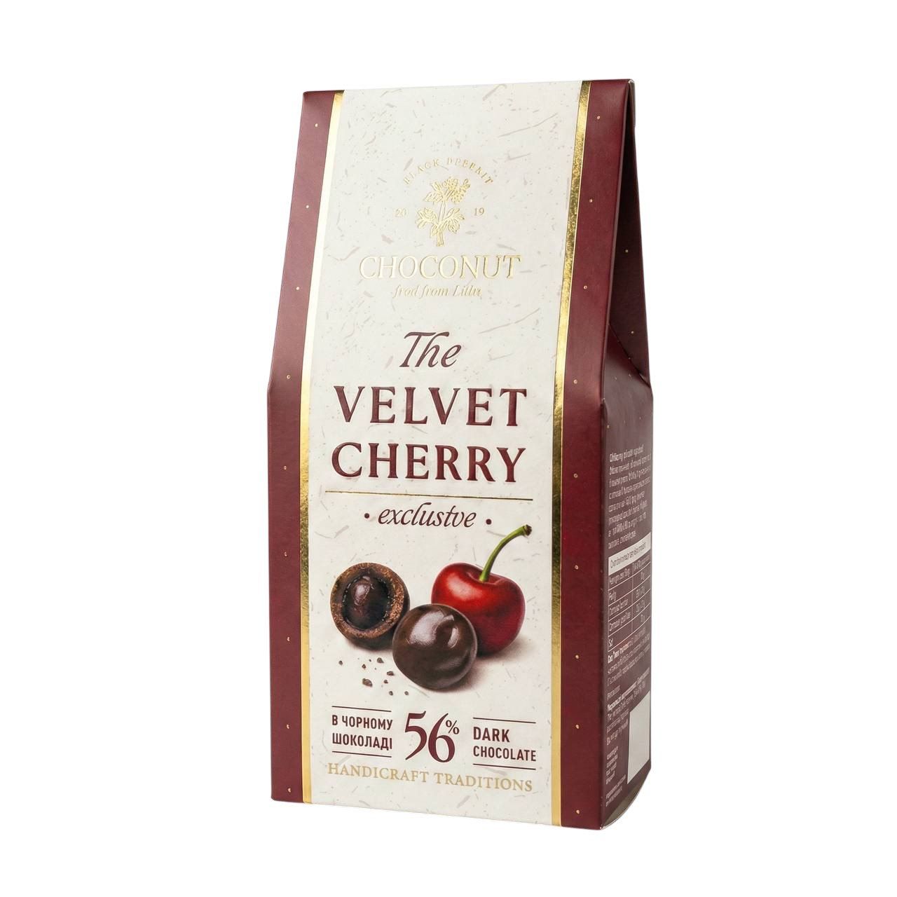 Склад: шоколад чорний [цукор, какао терте, еквівалент какао-масла (негідрогенізована пальмова олія), какао-масло, емульгатори: лецитин (з сої), Е476; ароматизатор ванільний], вишня в'ялена, глазуруючі агенти: E414, E904.